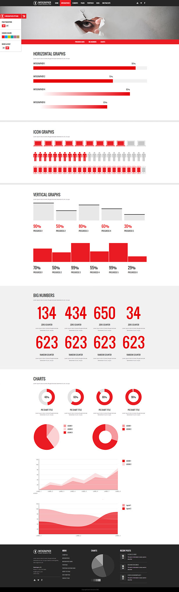 INFOGRAPHER is a ultimate infographic highly interactive WordPress theme. Use our awesome infographics and other interactive elements, choose between 4 fluid AJAX animations, create unlimited Parallax pages, take advantage of awesome Revolution Slider. Build you web site using our highly intuitive and friendly to use framework.