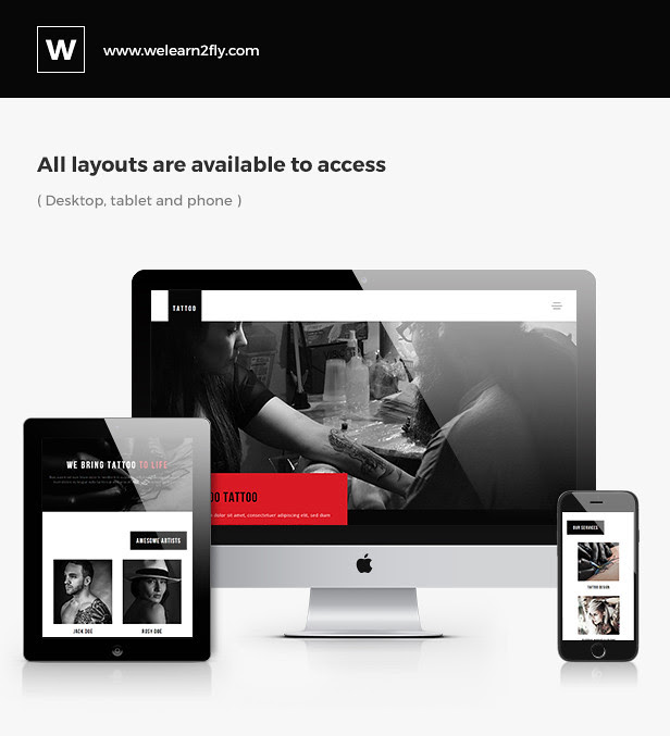 This theme can be used for tattoo salon and tattoo shop. This theme is perfect for any other categories as well. The template is based on modern layout and it is easy to customize with Adobe Muse CC 2015.0.2, CL 792950 or above.